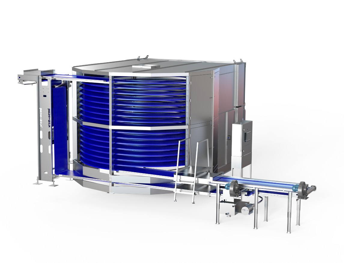 O Túnel Helicoidal Brusinox é projetado para o congelamento ou resfriamento de produtos individuais, sem a necessidade de bandejas, congelando mais em menor espaço de tempo, com capacidades de 500 a 10.000 kg/h.